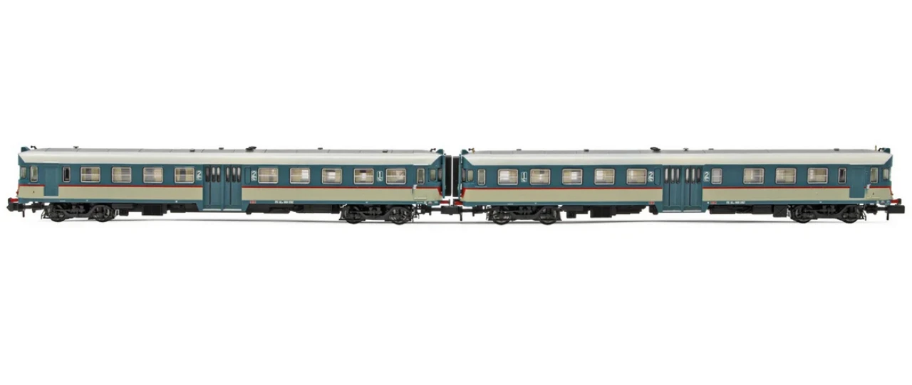 FS, 2-tlg. Dieseltriebwagen ALn 668 Serie 3100 in original hellblau/beiger Lackierung, flache Stirnfenster, Ep. V