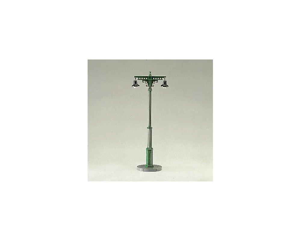 Wie LGB 50550, aber mit zwei Armen. Abnehmbarer Stecksockel und Erdstift für den Freilandbetrieb. Glühlampe 18 V (LGB 68501). Höhe 335 mm.
