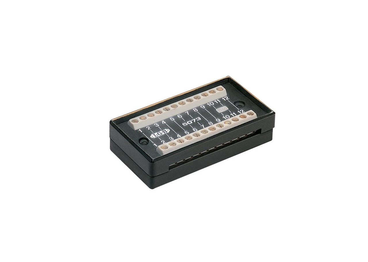 Mit dieser praktischen Verkabelungshilfe können Sie bis zu 12 Leitungen verlängern. Die 12 Schraubklemmen sind jeweils mit der gegenüberliegenden Klemme verbunden. 84 x 42 x 19 mm.