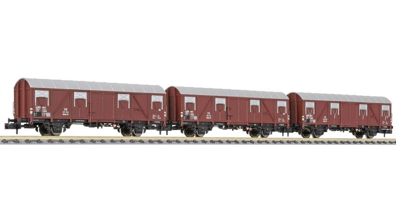 LILIPUT L260137 N 3-tlg. Set gedeckter Güterwagen Glmhs 50 glatte Wände ohne Bühne, DB, Ep. III