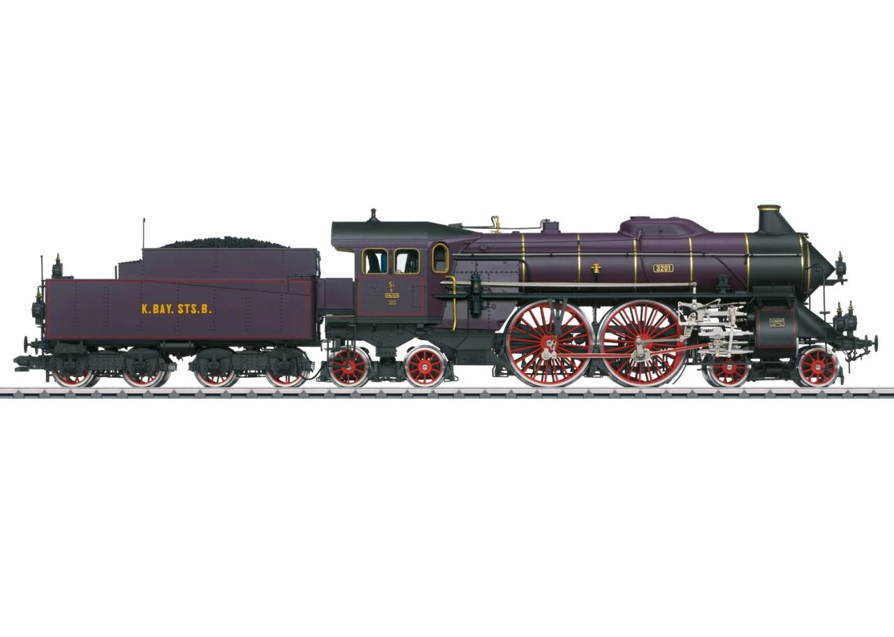 Vorbild: Schnellzug-Dampflokomotive der bayerischen Gattung S 2/6 in braunvioletter Grundfarbgebung mit goldenen Kesselringen der Königlich Bayerischen Staatsbahn (K.Bay.Sts.B.), für den Einsatz im linksrheinischen (pfälzischen) Netz. Betriebszustand um 1910 bis 1912. Loknummer 3201.