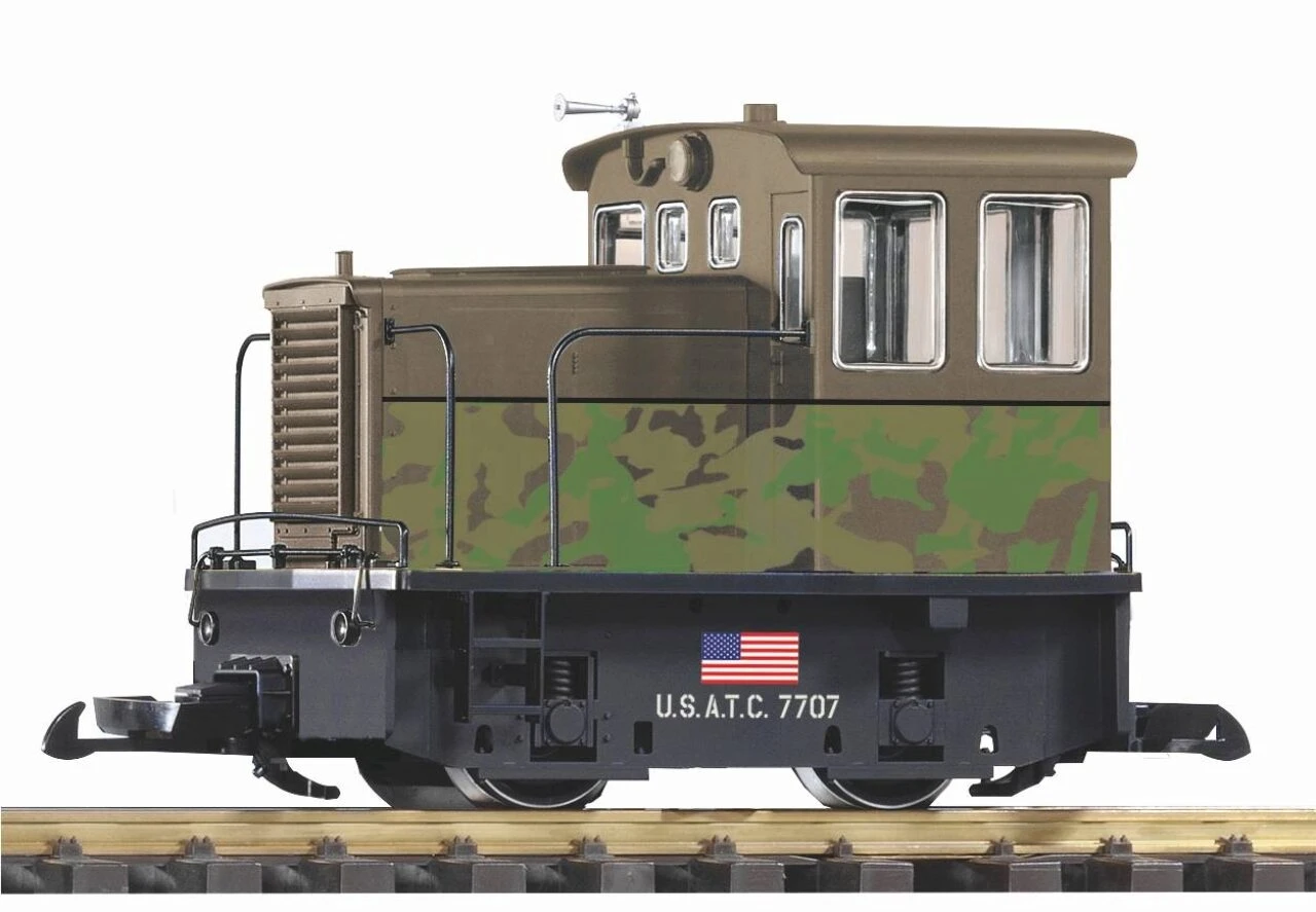 Neuheit 2022: Diesellok GE 25-Ton in der Lackierung der US Army. Die Lokomotive ist ab Werk mit Sound ausgestattet und für den Batteriebetrieb geeignet.