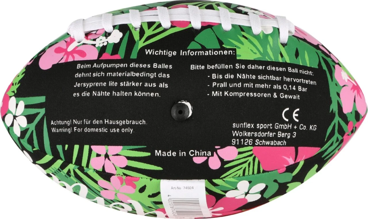 sunflex AMERICAN FOOTBALL im TROPICAL FLOWER Design! Der enorm griffige Neopren-Football lässt sich super werfen und fangen. Für Land und Wasser.