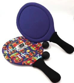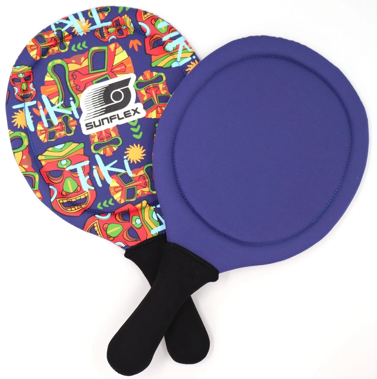 sunflex BEACHBALL SET aus Neopren im TROPICAL TIKI-Design! 2 hochwertige Beachball-Schläger, perfekt für Wasser, Strand und Wiese. Wasserfest, extrem stabil und griffig. Die Rahmenkonstruktion sorgt für ein präzises und gefühlvolles Spielvergnügen inklusive 2 Bälle.