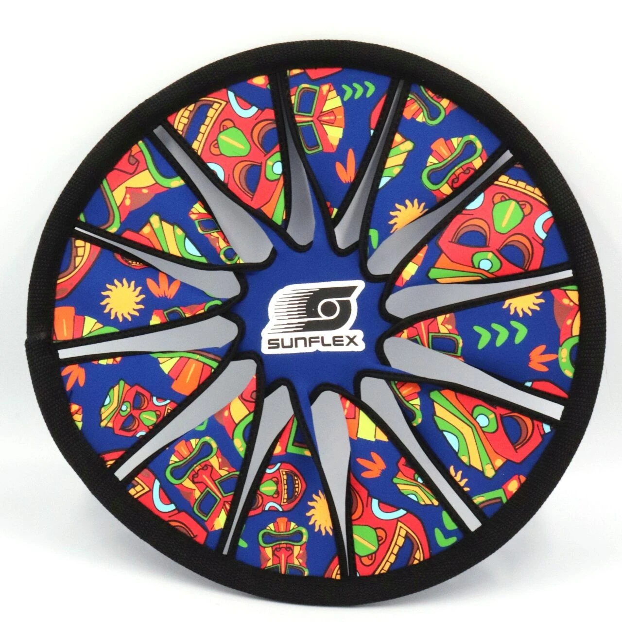 sunflex VENUS FLYING DISK aus Neopren im TROPICAL TIKI-Design. Optimale Flugeigenschaften dank Fächer. Stabiler Rand ermöglicht leichtes Fangen, auch im Wasser.